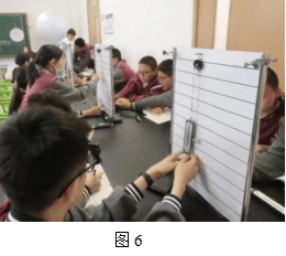 教师:教师将这个滑轮安装在吊臂的顶端,我们再请刚才的这位同学,利用滑轮将物体提升起来,同学们观察滑轮工作的过程(如图5)。