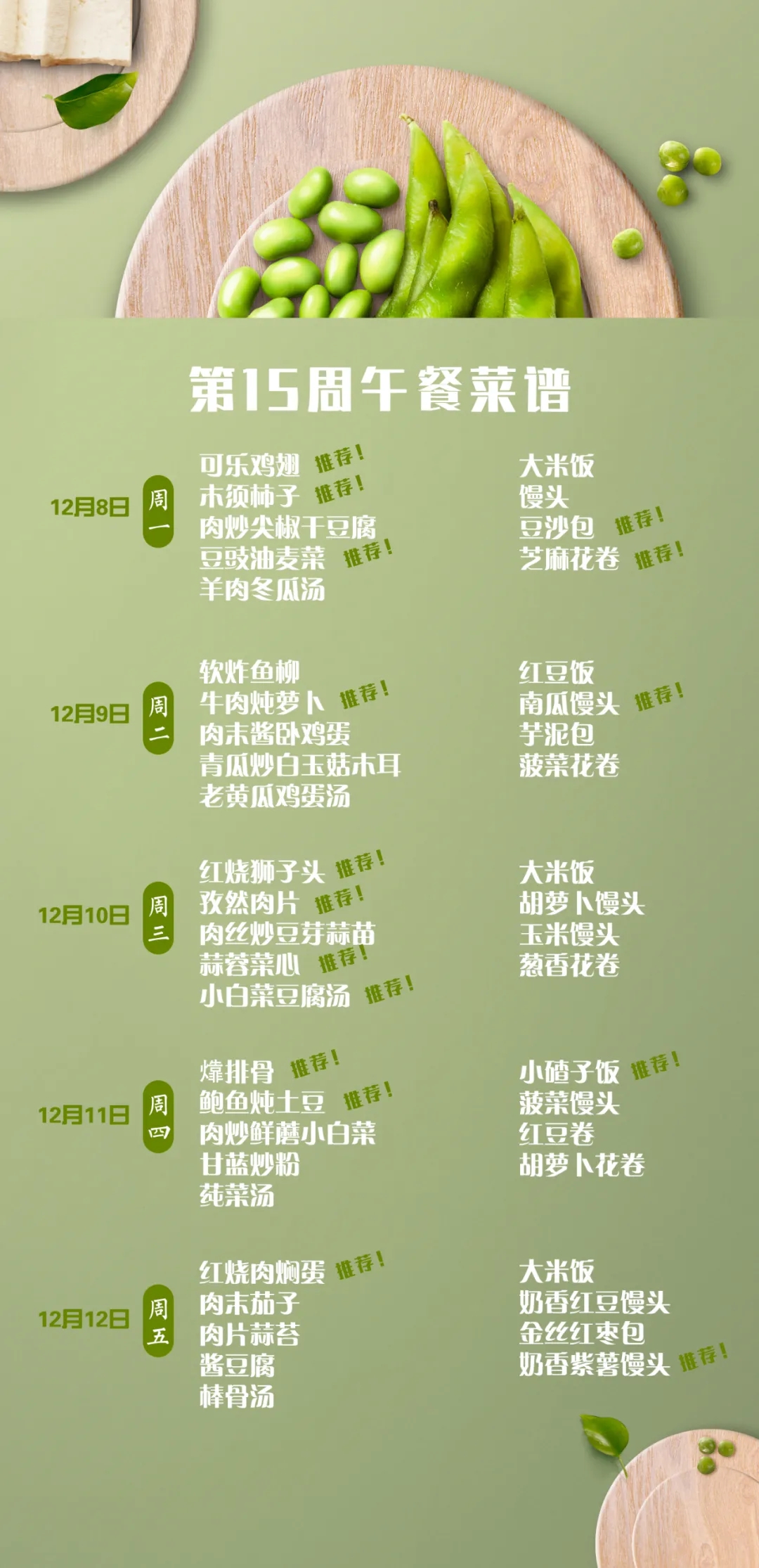 一起重温第十五周午餐菜谱中的佳肴