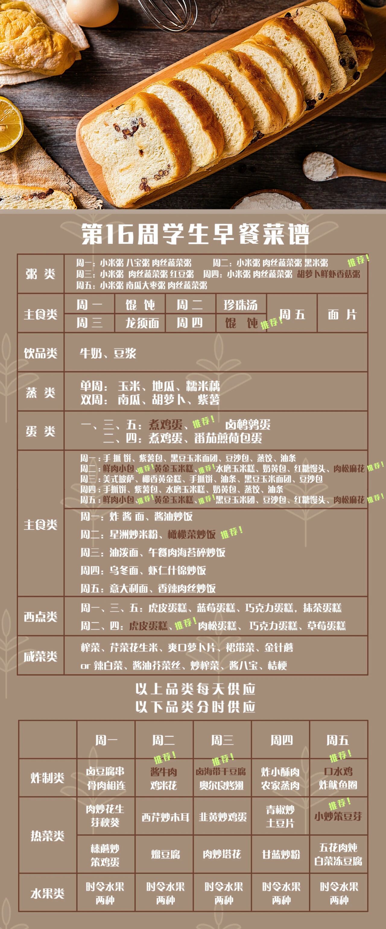 一起重温第十六周早餐菜谱中的佳肴