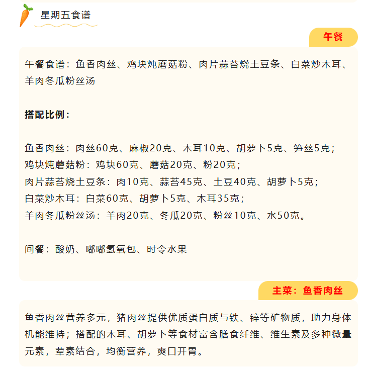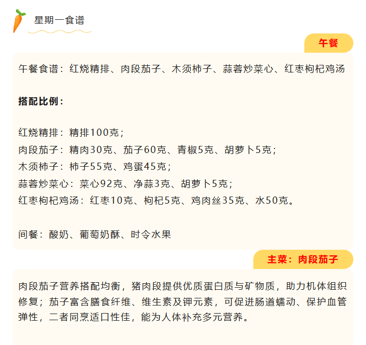 下周食堂精心定制暖心菜谱