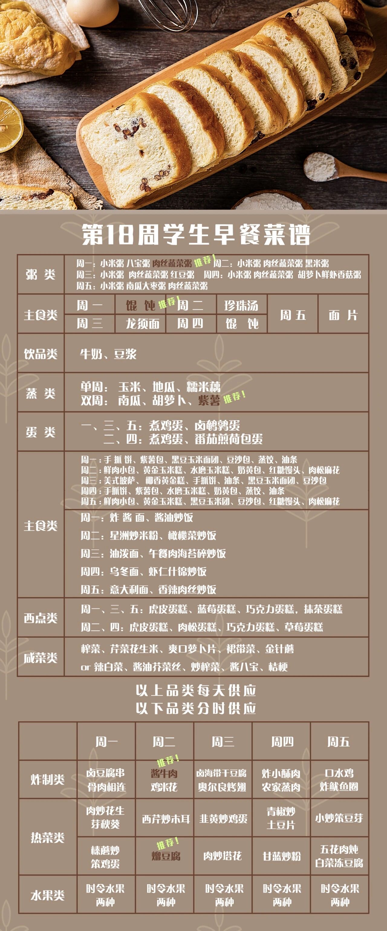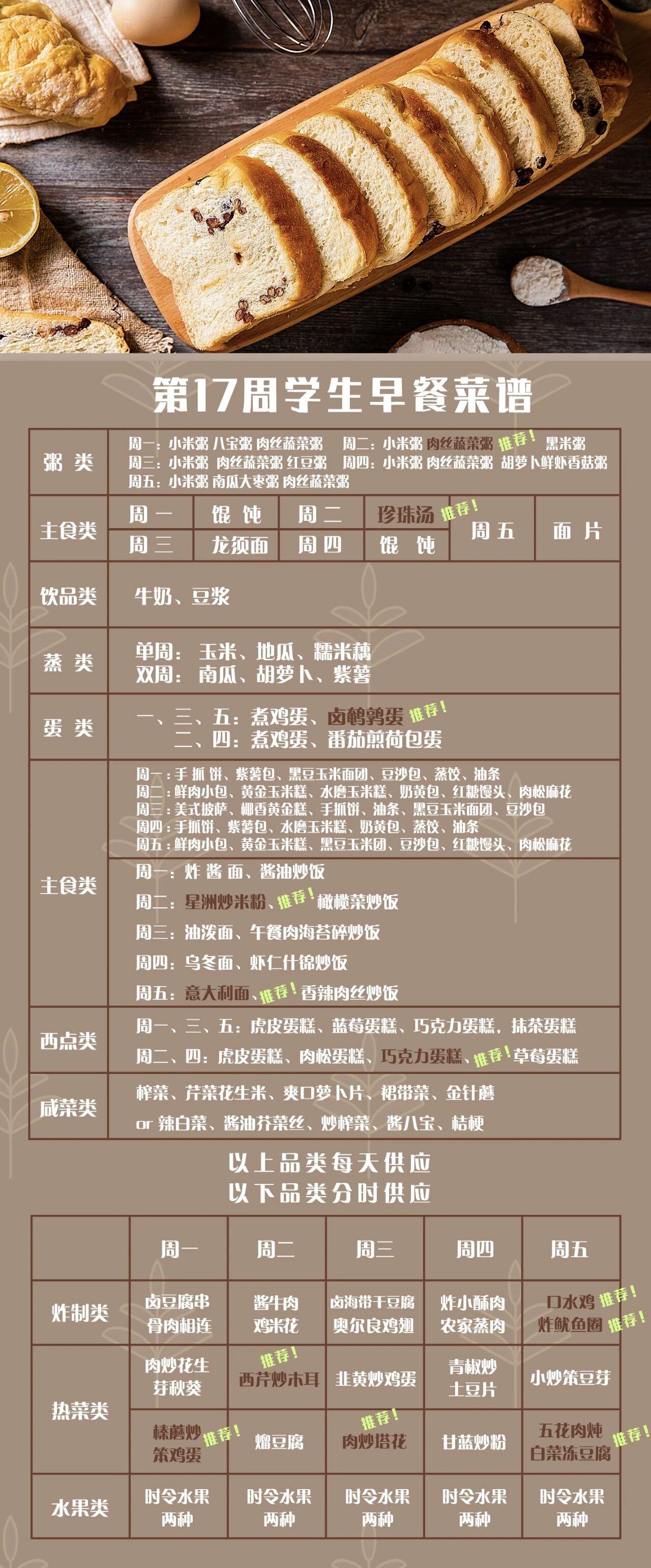 一起重温第十七周早餐菜谱中的佳肴