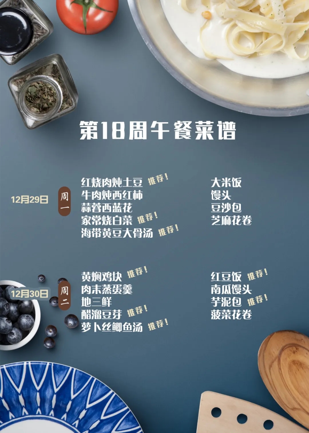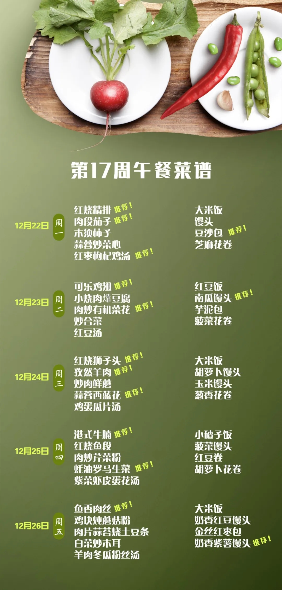 一起重温第十七周午餐菜谱中的佳肴