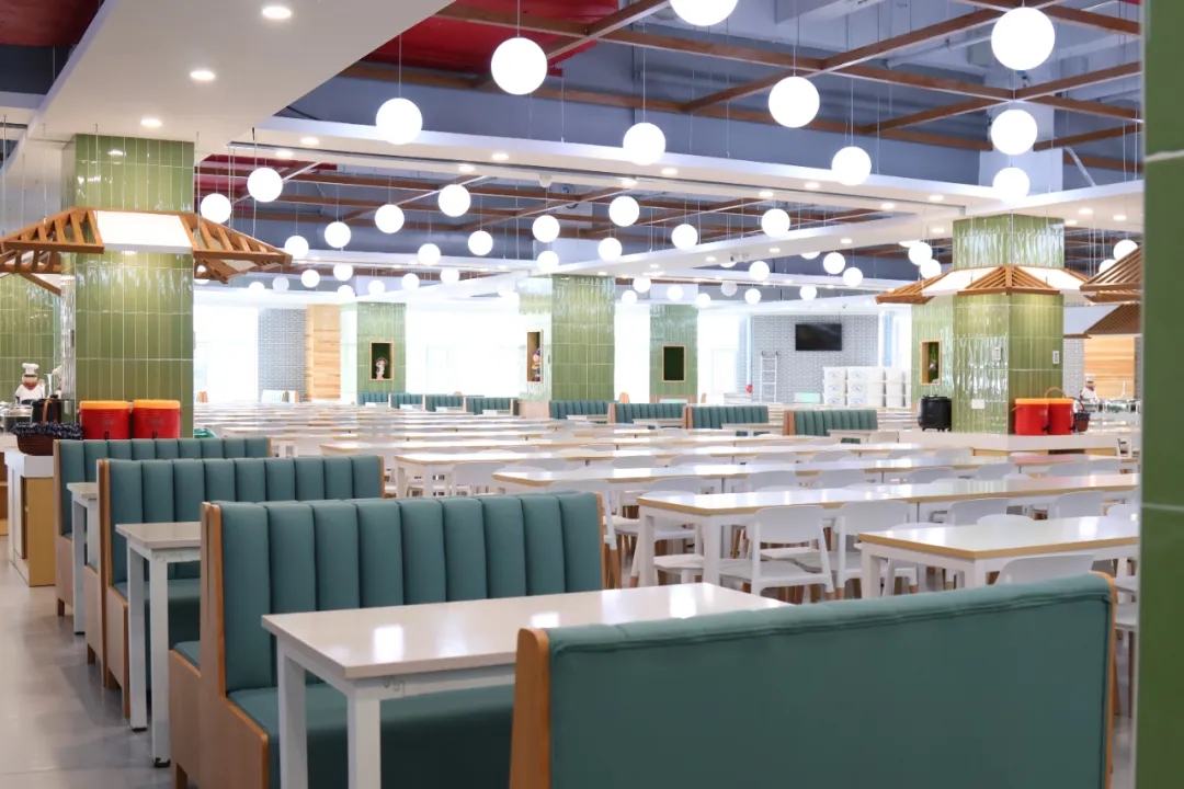 清晨,食堂亮起暖黄的灯
