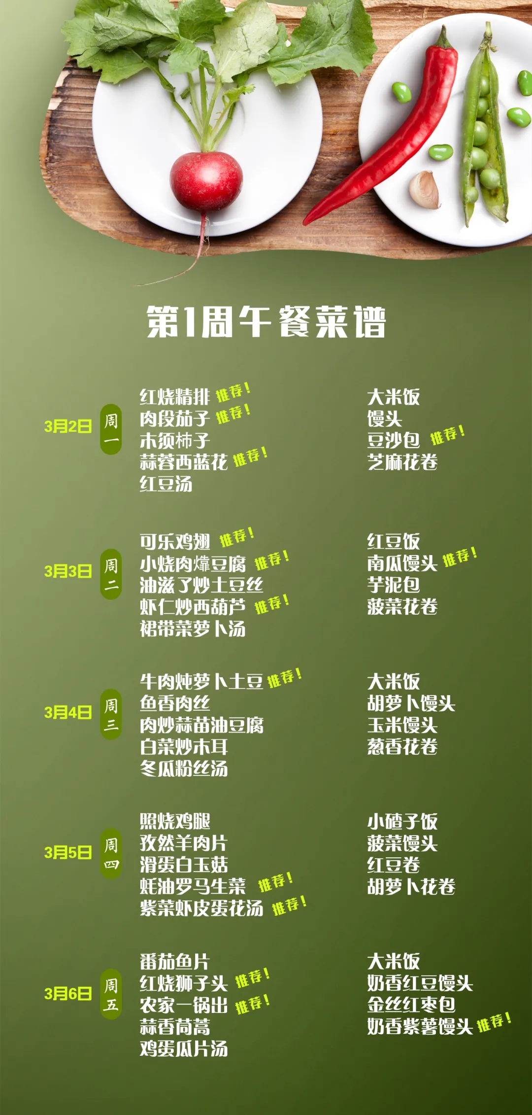 一起重温第一周午餐菜谱中的佳肴