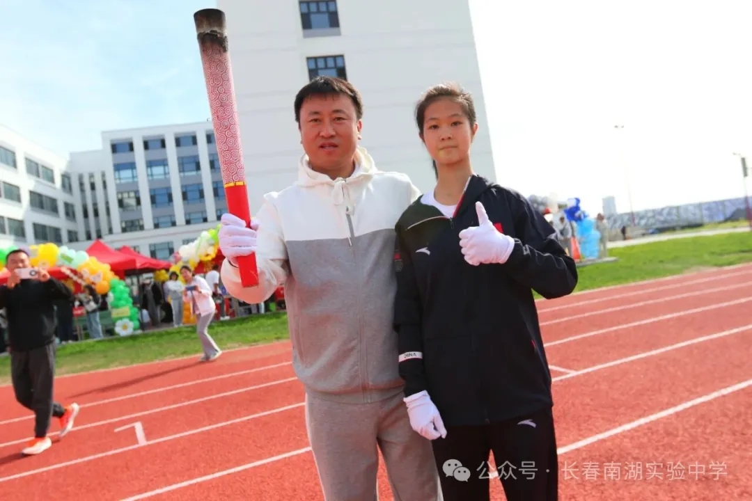 郑笑同学,一个用脚步丈量坚持、用热爱温暖群体的追风少年,2024年获得长春市青少年田径锦标赛女子乙组3000米铜牌、1500米第四名,2025年还获得长春市中学生运动会初中女子组1500米及3000米第三名,吉林省体育传统项目学校田径锦标赛初中女子1500米及3000米亚军。她手中的火炬,不仅传递着运动会的热烈,更传递着青春最珍贵的模样:永远向前,永远带动,永远相信——“你奔跑的时候,全世界都会为你让路”。