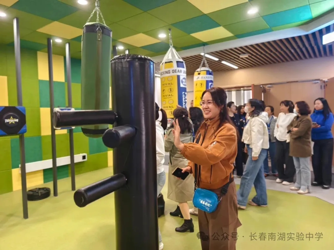 培训间隙,与会教师们在心理学科李朝恒老师的引导下,兴致盎然地参观了南湖新校园。优美的校园环境、先进的教学设施、特别是开放式释压空间,给参训教师们留下了深刻印象。大家对我校在优化育人环境、高度重视学生身心健康发展方面所做出的努力给予了高度评价,并表示此次参观为他们未来的学校心理健康教育工作环境建设提供了宝贵的参考。