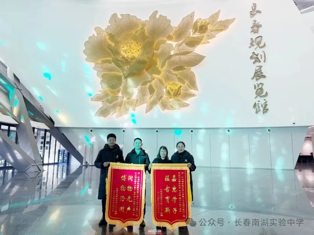 为了表达对规划馆、博物馆全体员工的感谢,长春南湖实验中学李晶主任、刘鑫副主任向长春润德投资集团有限公司展馆运营分公司赠送了锦旗。