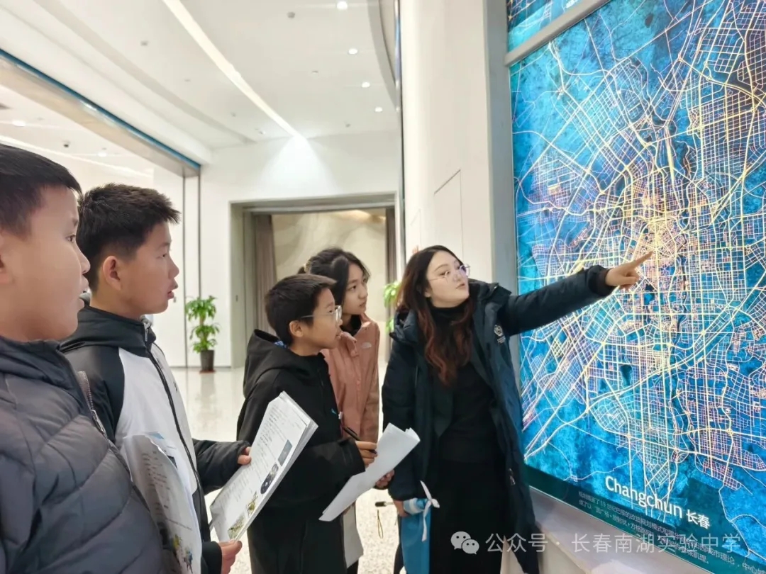 推开规划展览馆的大门,一座城市的“成长档案”徐徐展开。展厅以“城市发展历史”“城市科学规划”“城市未来探索”为三大核心脉络,同学们在讲解员的引导下,仿佛穿越时空:在“百年长春”展区,老照片里的街道、建筑与如今的繁华景象交相辉映,让人读懂城市的变迁;在“城市名片”板块,“汽车之城”的工业底蕴、“轨道客车之城”的创新实力、“电影之城”的艺术氛围、“雕塑名城”的人文气息扑面而来,大家忍不住驻足讨论,为家乡的特色标签自豪。