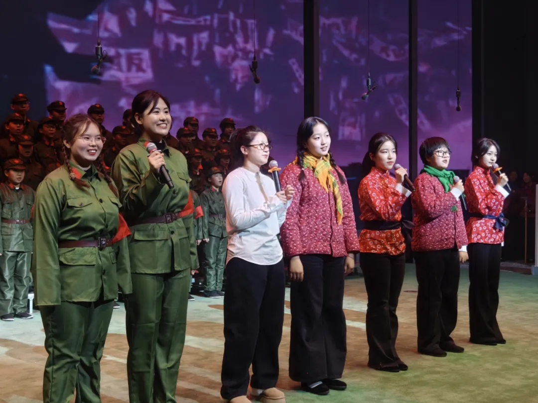 七年五班、七年六班带来的《十送红军》《浏阳河》将军民鱼水的深厚情谊娓娓道来。同学们以真挚嗓音勾勒温暖岁月,让那段军民同心的动人往事,在歌声中愈发鲜活。