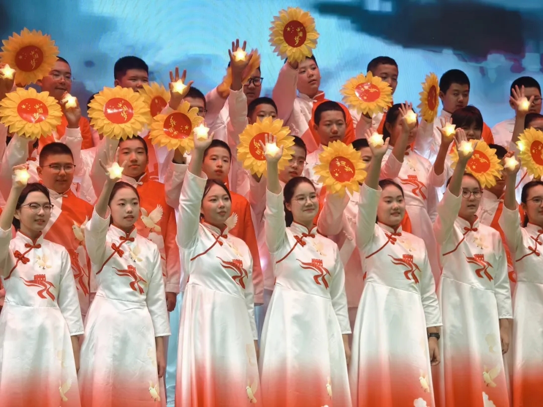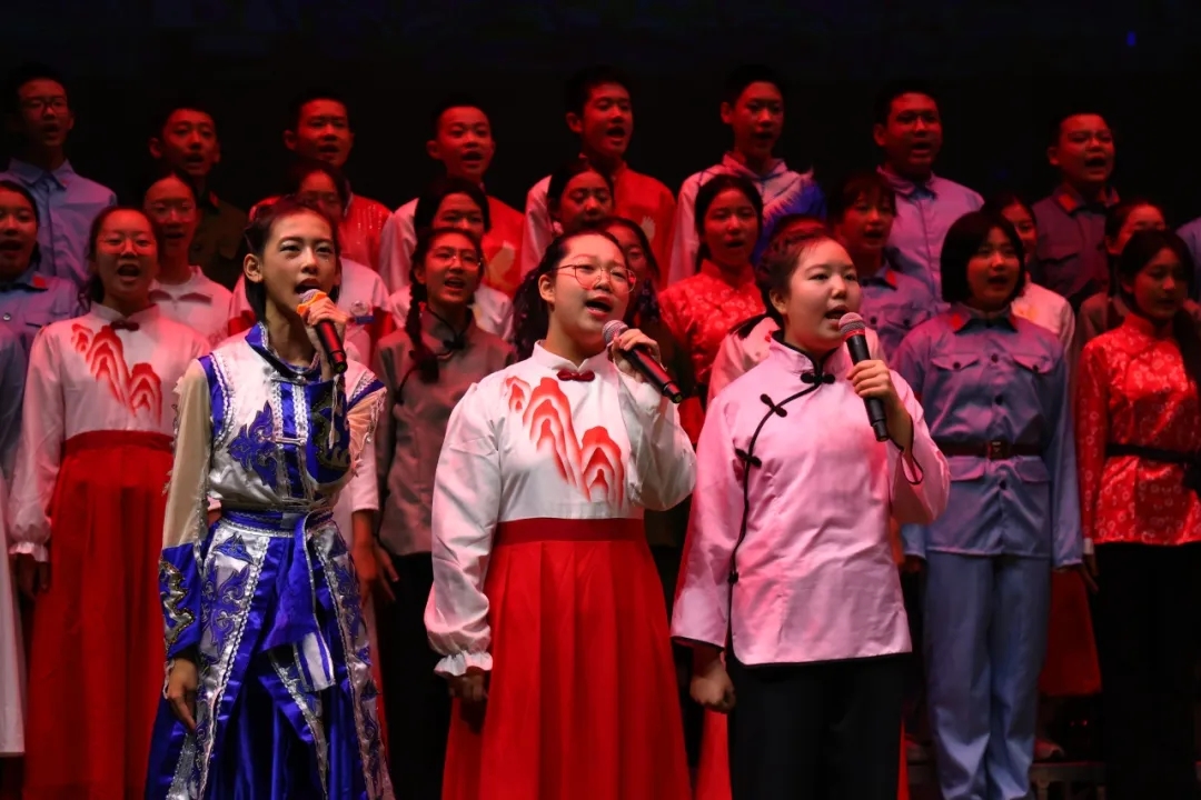 七年九班、七年十班带来的《东方红》《唱支山歌给党听》镌刻时代记忆,清澈嘹亮的歌声穿透舞台,从对伟大领袖的深切敬仰,到对党的赤诚眷恋,每一个音符里都流淌着少年与祖国同向同行的深情。