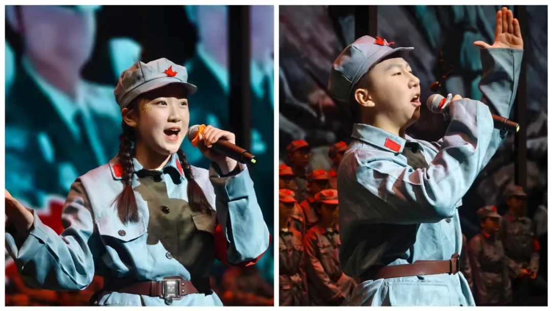 七年一班、七年二班的同学们带来了《长征组歌》,每一句歌声都承载着红军战士的坚定信仰,每一段旋律都回响着跨越时空的精神力量,让现场师生沉浸式感受伟大远征的不朽传奇。