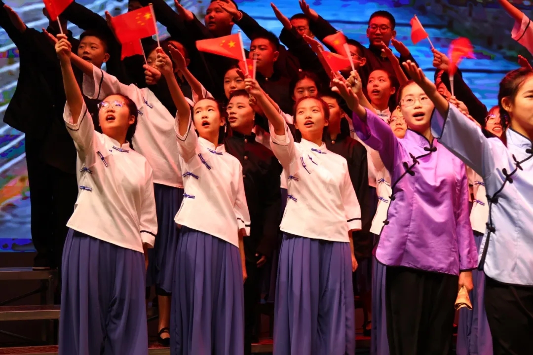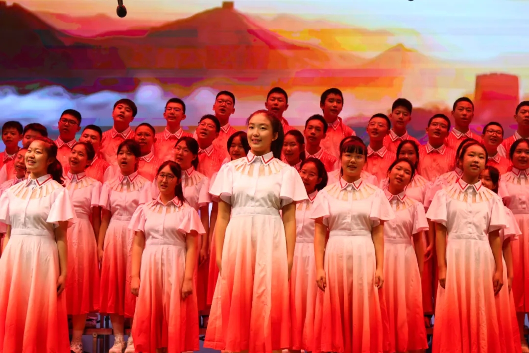 七年十五班、七年十六班合唱的《赞歌》《北京的金山上》,一字一句皆是深情礼赞,一音一符满含赤诚热爱。同学们用真挚的歌声歌颂伟大祖国,唱出了新时代少年身处盛世、见证荣光的自豪与豪迈。