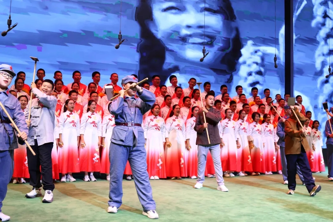 七年二十一班、七年二十二班演唱的《太行山上》,曲调豪迈,唱出了军民同心抗敌的壮志豪情;《三大纪律八项注意》的节奏铿锵,诠释了人民军队纪律如铁、初心如磐的制胜密码,尽显铁军风采。