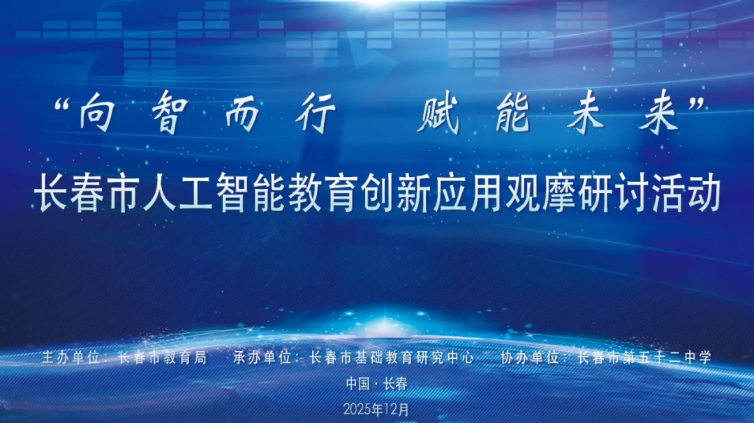 为深入贯彻《教育强国建设规划纲要(2024—2035 年)》,积极响应教育部“人工智能赋能教育行动” 的号召,落实《吉林省人工智能赋能中小学教育教学改革试点工作方案》,推动人工智能与教育深度融合,由长春市教育局主办、长春市基础教育研究中心承办的“向智而行 赋能未来”长春市人工智能教育创新应用观摩研讨活动,于2025年12月16日-17日举行。