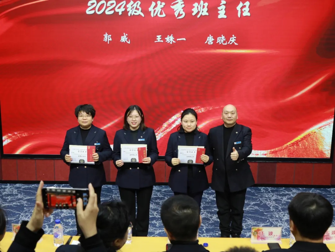 刘波常务副校长和解长军副校长为获得骨干教师等荣誉,以及在各级各类比赛中获奖教师代表颁发证书和奖金。