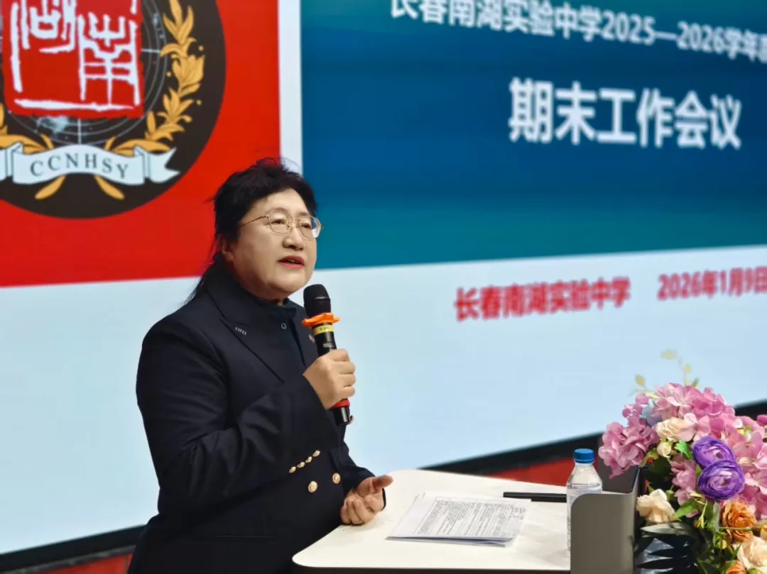 刘卓娟校长对2025-2026学年度上学期学校工作进行了总结,对引领和大力支持南湖发展的集团领导们表达了深深的敬意和感谢。