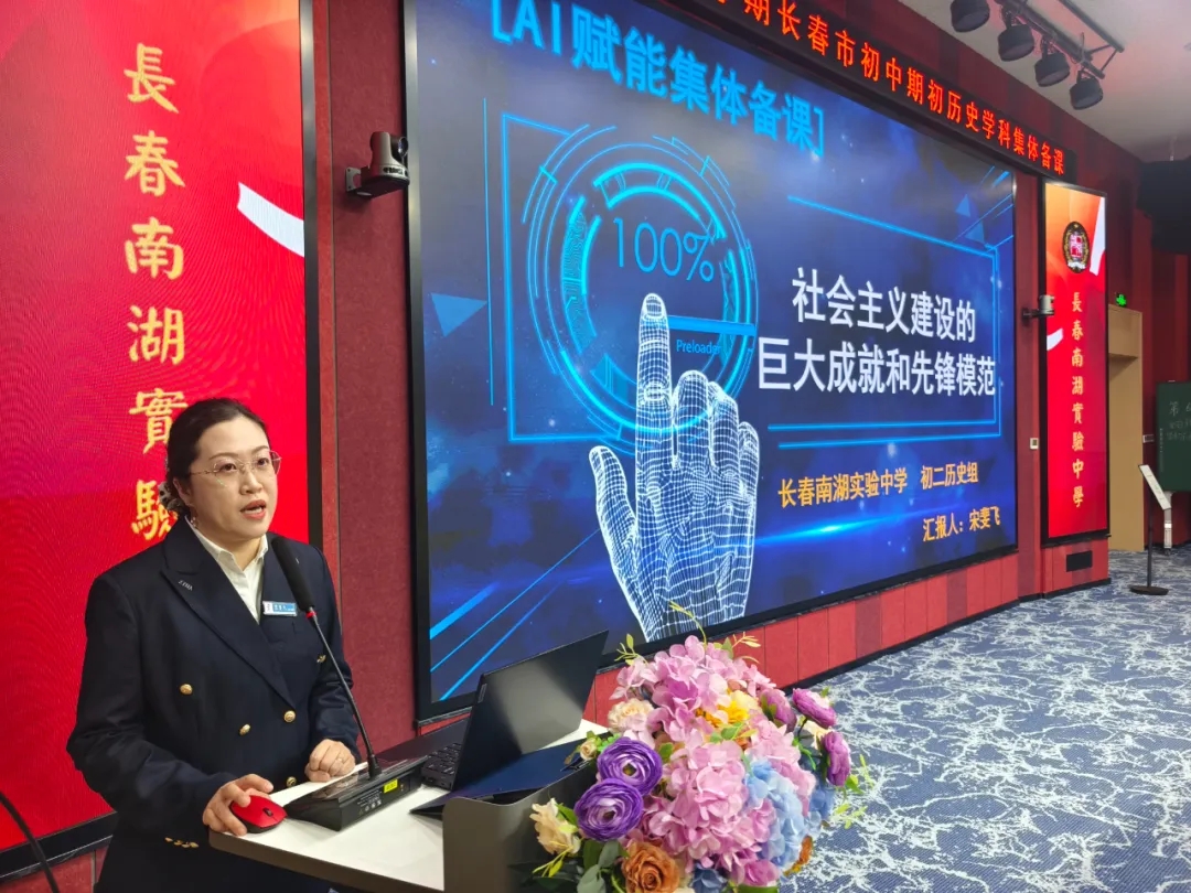 长春南湖实验中学赵宇老师与八年十八班的学生共同带来《社会主义建设的巨大成就和先锋模范》优质课例展示,将八年级备课组对AI技术在历史学科的探索与实践成果生动呈现。