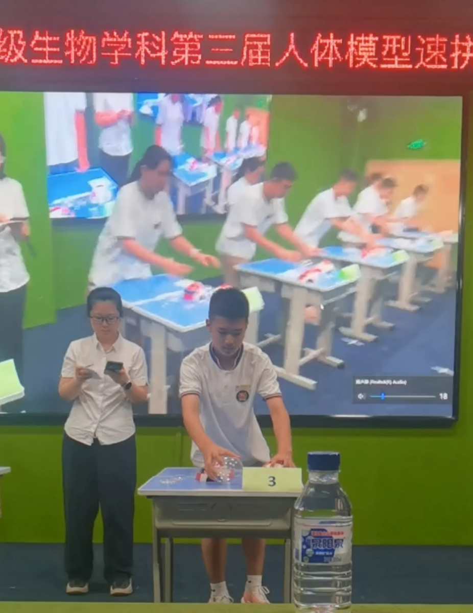 在生物学科人体模型速拼大赛中。指尖起落,骨骼与器官渐次归位,生命的精妙与协调在拼接完成的刹那震撼人心。这般体验让我们真切领悟到:学问不止于书本,更在于“知行合一”。只有双脚沾泥,双手触真,知识方能落地生根,抽展出理解世界的枝桠。