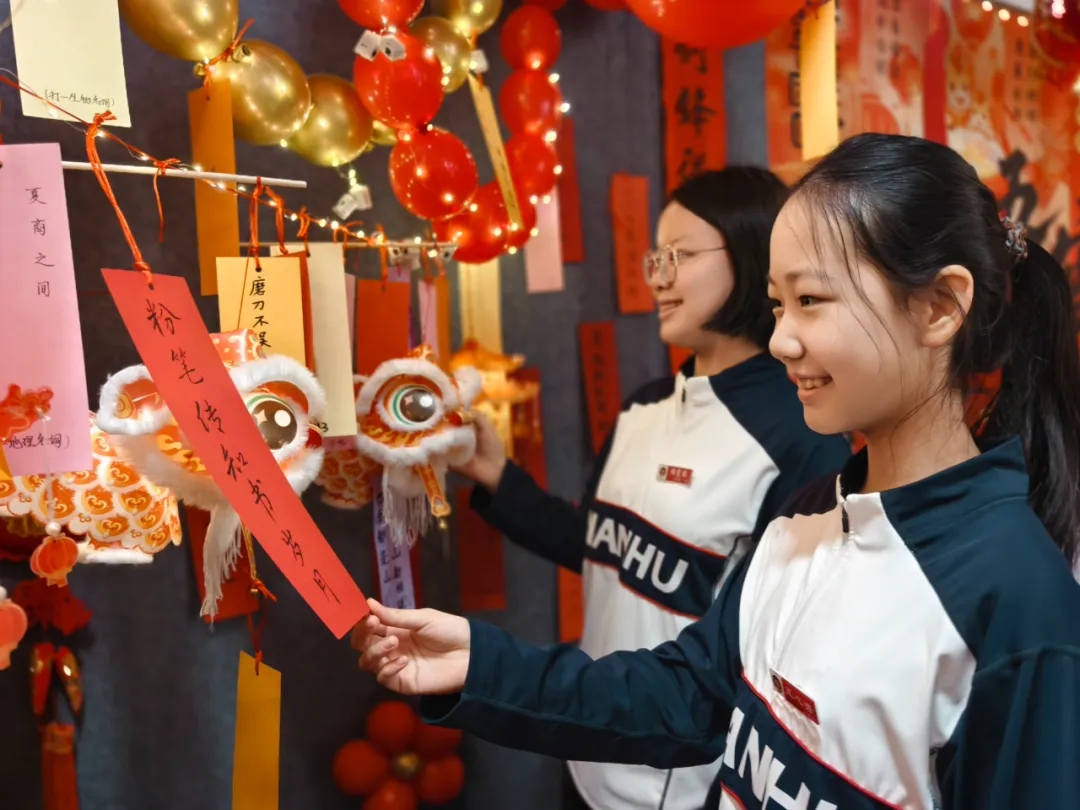 正月十五元宵佳节,南湖八年级“灯火良宵・南湖锦绣”元宵游园会在教学楼一楼正厅启幕。南湖少年以灯、谜、联为媒,沉浸式体验元宵民俗,让千年传统文化在校园绽放新时代少年风采。