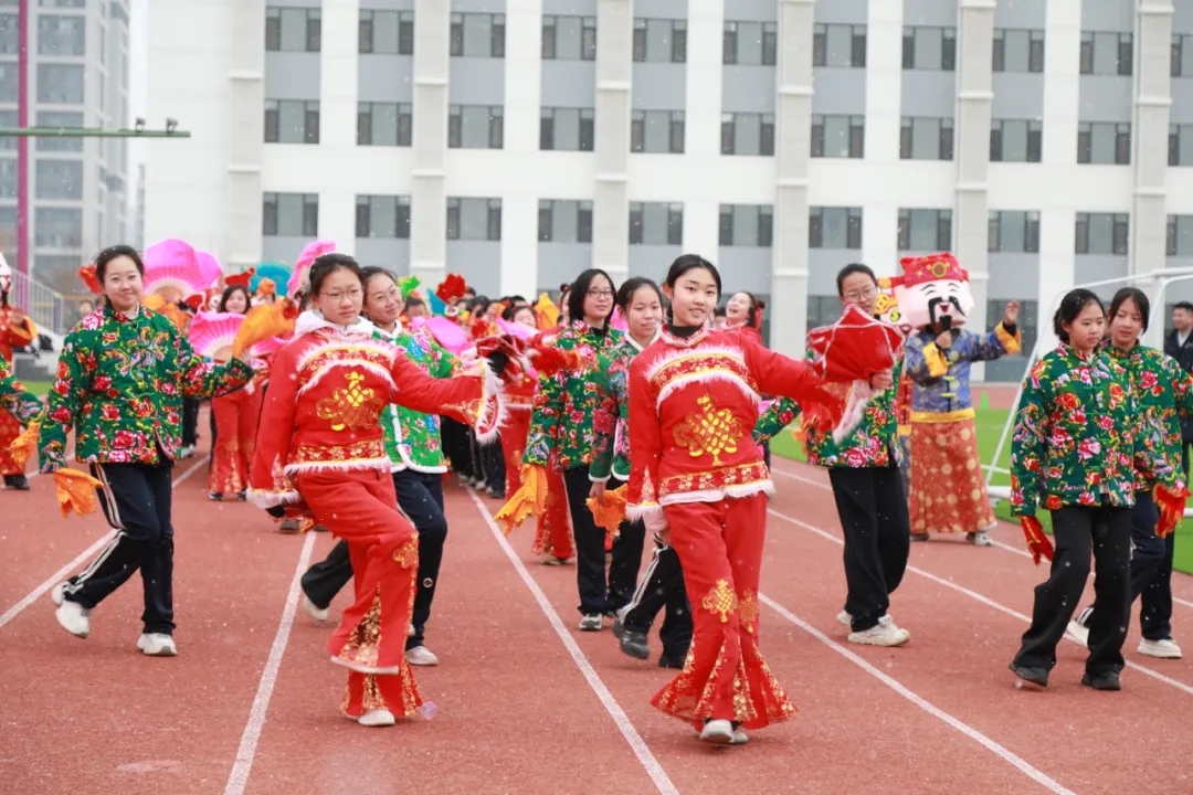 铿锵锣鼓声穿透轻雪,师生们踩着明快节奏,扭腰、摆扇、踏步……每一个方阵都各有特色、亮点十足。这一刻,传统的东北大秧歌被注入了青春的血液,掌声、笑声、锣鼓声交织在一起,汇成了一曲最动听的节日交响乐 。